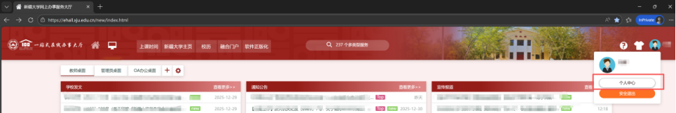 进入一站式在线办事大厅后,点击右上角头像,选择个人中心。