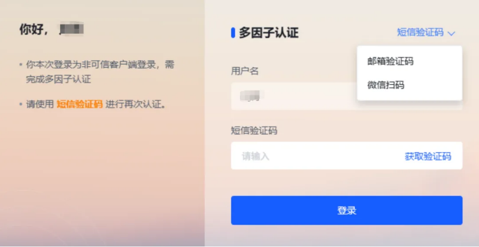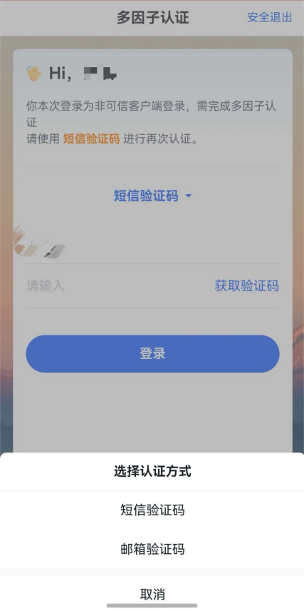 如果在公用终端上临时登录系统,需选择“仅本次登录”,下次在该终端上登录,需要二次验证才能登录成功。