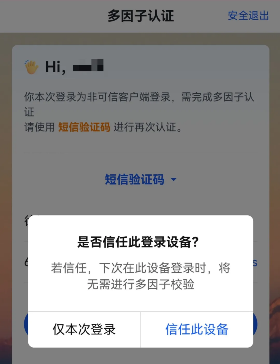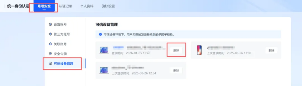 如果在个人信任终端上,选择“信任此设备”,下次在该终端上登录,不需要二次验证。