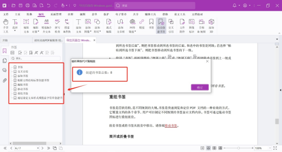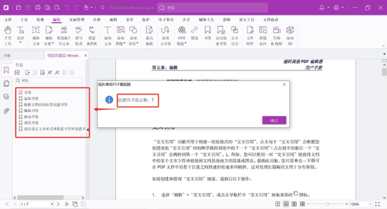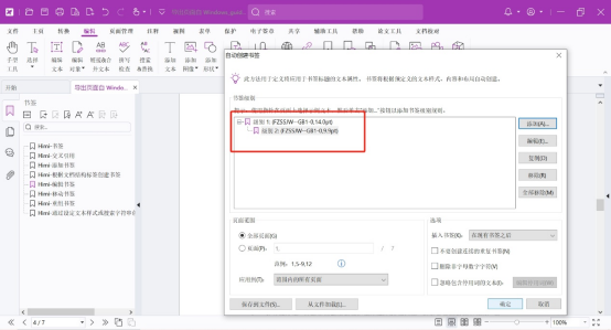 如果不需要修改删除,则点击“确定”,系统会默认识别选中的字体属性,所有使用指定字体和字号的文本将会被自动设置为书签标题。