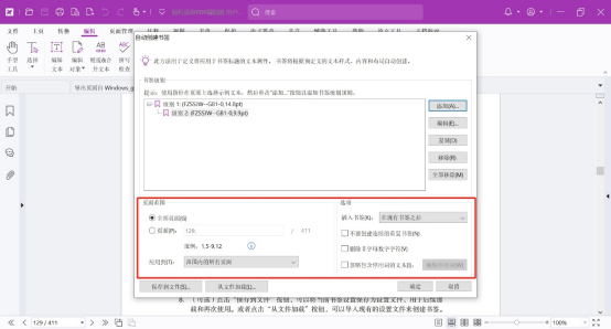 此外,我们还可以在“自动创建书签”对话框,进行页面范围设置以及其他设置。