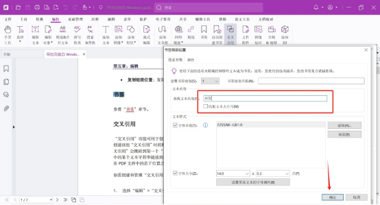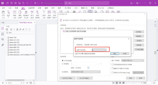 此时会弹出“书签级别设置”对话框,我们可以在此处设置搜索参数以及文本属性。
