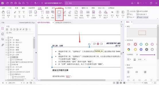 还可以通过绘图工具在PDF 文档中绘制箭头、线条、正方形、矩形、圆形等图形,通过这些图形对文本或图像做一些标记。在格式面板中可以对线条、颜色等外观进行修改。
