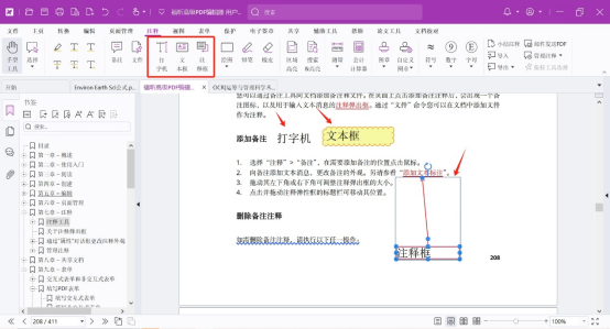 如果需要在文本中直接打字作为注释,我们还提供了打字机、文本框和注释框三种不同的形式。